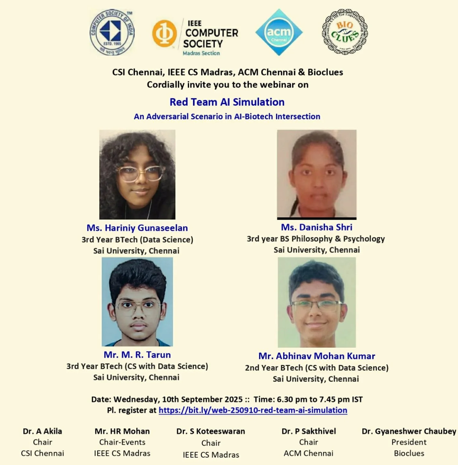 I am Abhinav Mohan Kumar, a first-year student at Sai University, majoring in Computing and Data Science. A student in the truest sense, I am curious and eager to explore a variety of fields. Some of the feathers in my hat of interests include technology, racing, economics, philosophy, politics, history, finance, psychology, and debate. I am grateful for the opportunity to contribute to the red-team exercise, which is a fascinating intersection between technology and security. I look forward to collaborating with peers and experts across various disciplines and deepening my understanding of technology and its impact.
