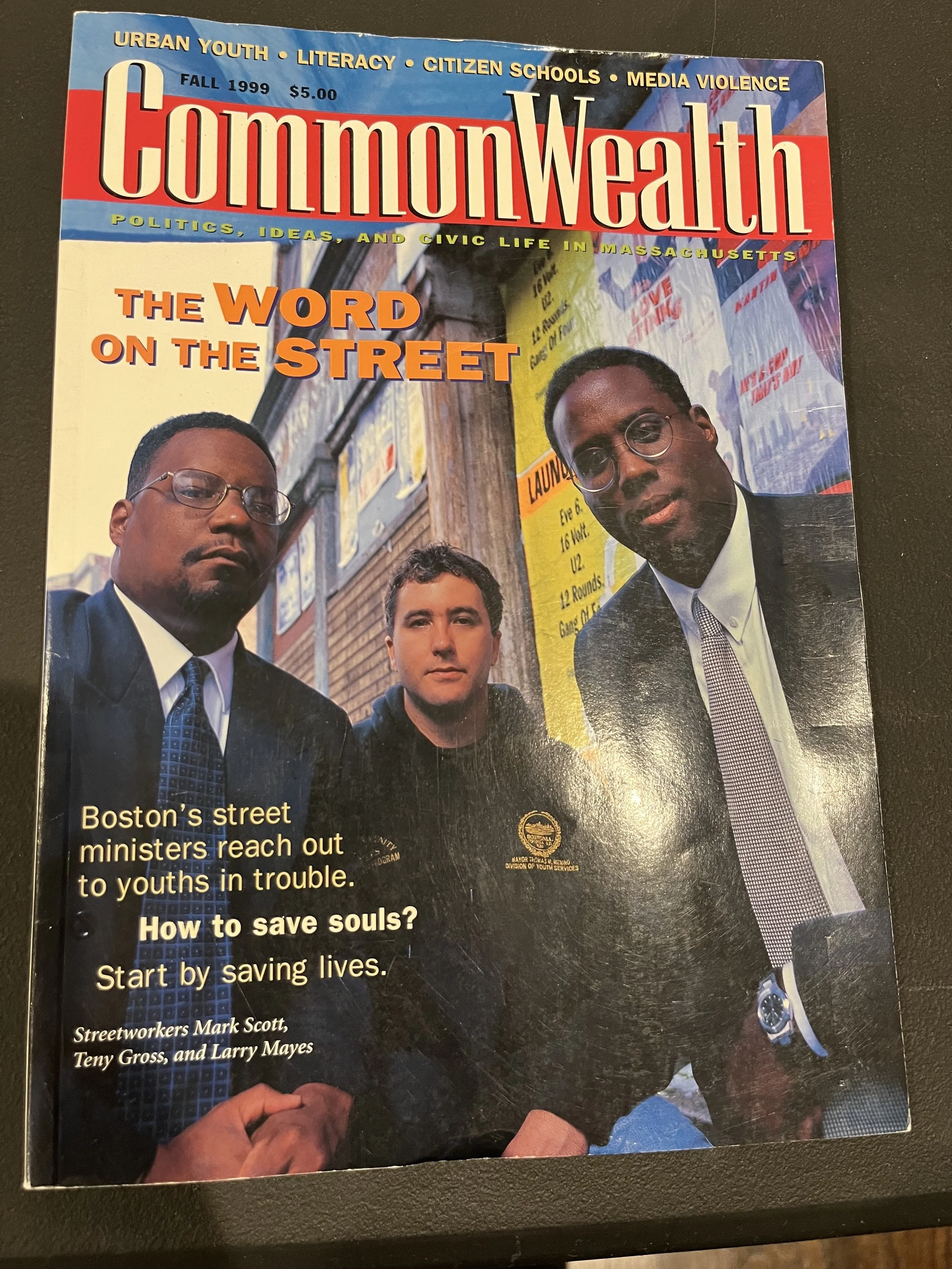 As a Harvard’s Divinity School graduate and was very involved with the inner city clergy of Boston as a street minister. He was featured in this 1999cCommonwealth cover story, “The Word on the Street: Boston’s street ministers reach out to youths in trouble - How to save souls? Start by saving lives.”