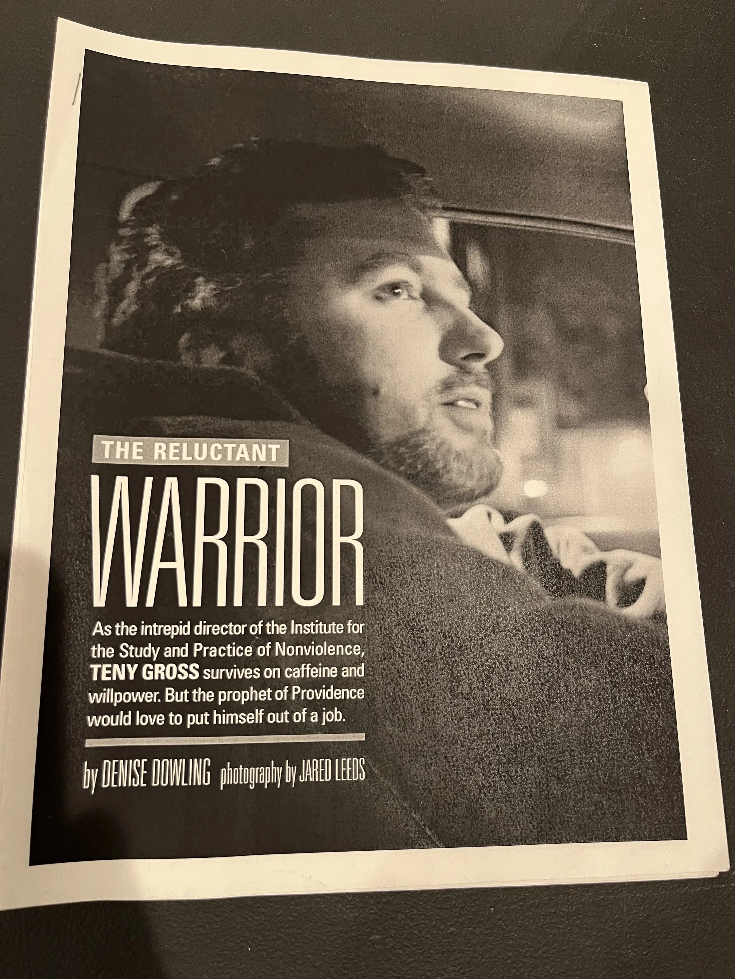 Teny left Boston to assume the directorship of Providence Rhode Island’s ’s Institute for the Practice and Study of Nonviolence. This article from Rhode Island Monthly (April 2006), “The Reluctant Warrior, spoke of him appropriately as “intrepid” and as the “prophet of Providence.”