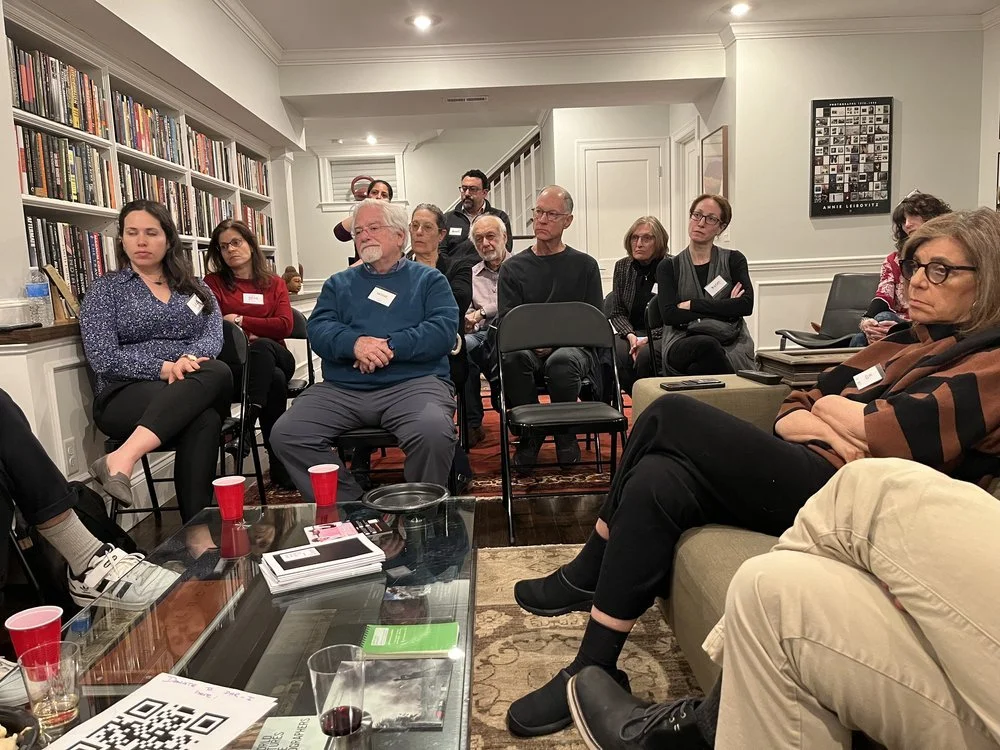 Pictured here are friends and allies who have come to a Trebuchet/Convisero meeting for Physicians for Human Rights Israel at my home, moderated by Convisero mentor Susannah Sirkin, former longtime policy director at Physicians for Human Rights (U.S.).